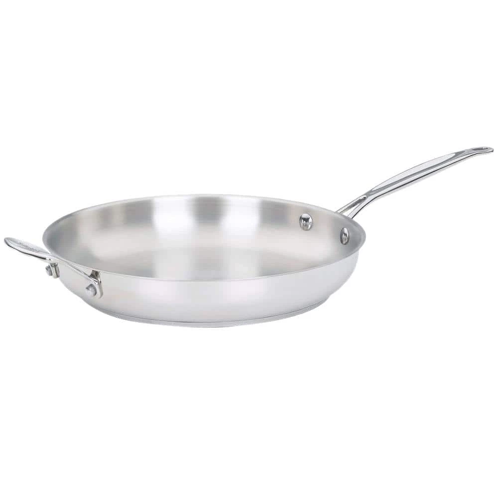 The Cuisinart 722-30H Chef’s Classic Stainless 12 in. Open Skillet with Helper Handle includes an exclusively designed aluminum encapsulated base to provide superior heat conductivity and even heat distribution to meet the demands of gourmet chefs everywhere. A solid stainless steel riveted handle stays cool on the stovetop with the helper handle providing extra support and balance when lifting and pouring. The mirror finish, classic look and professional performance of stainless steel is an investment that will prove its worth every time used. The 18/10 stainless steel cooking surface does not discolor, react with food or alter flavors and easily cleans to its original brilliant finish. The Cuisinart Chef’s Classic Stainless Cookware will give countless years of service and pleasure.
