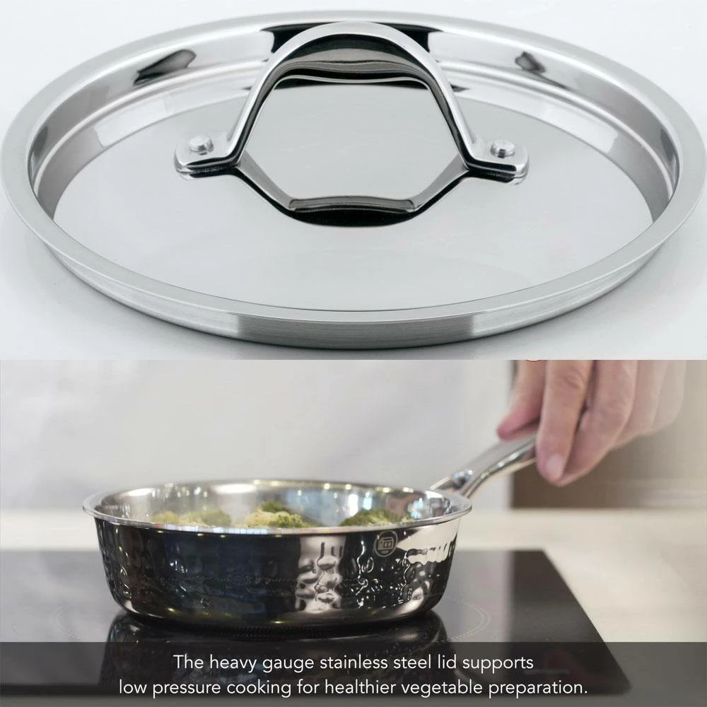 STERN cookware reflects traditional hand-hammered design that can be taken from the kitchen to the table to serve savory and nutritious meals in style. The tri-ply construction of bonded stainless steel, aluminum and heavy-gauge stainless steel allows for exceptional even and fast heat distribution. Plus, its heavy-gauge stainless steel fitted lid is designed to diminish condensation which allows for the foods to better preserve their nutrients.
