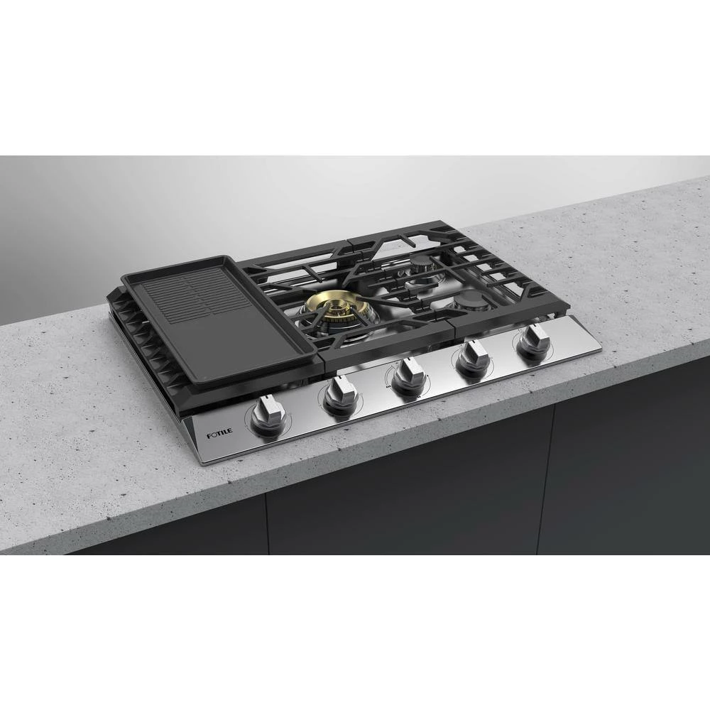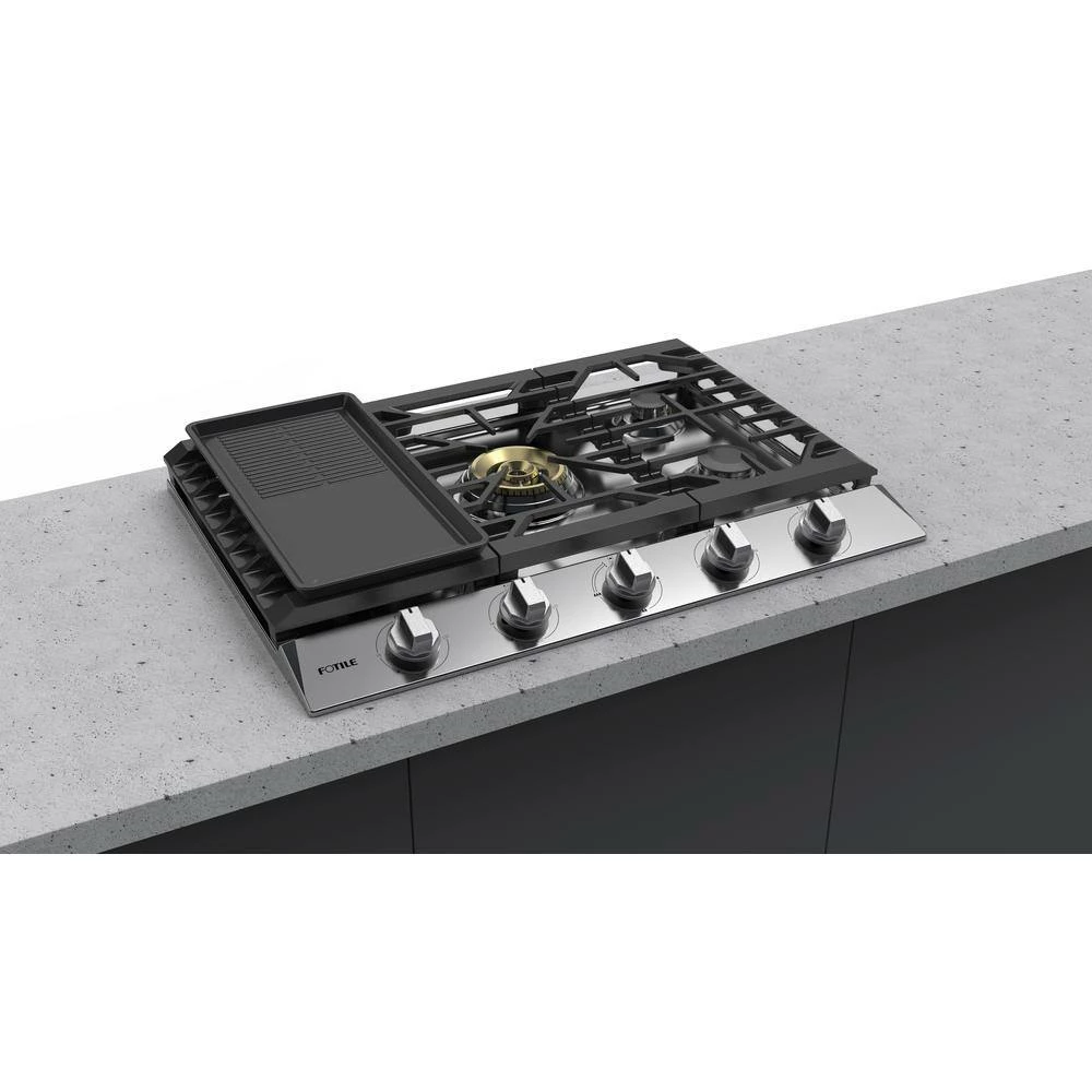 Expand your cooking options using a cooktop griddle. Introducing the FOTILE Tri-Ring optional Griddle. Use the Griddle cooktop for foods that require a flat large surface such as breakfast foods, grilled sandwiches, burgers, steaks, and sauteed vegetables. Using the Griddle accessory is quick and easy. with pre-set optimal griddle temp control technology, simply turn the two left burners to the circle mark, and your griddle will automatically reach optimal temperature to cook anything.