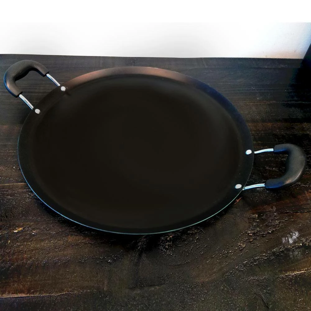 The Zadora Comal Pan is made of solid steel for even heat distribution. The interior features a non-stick coating for healthy low-fat cooking, easy food release and clean up. This pan is ideal for cooking/heating up tortillas, toasting spices, roasting veggies, searing meat and much more. It can also be used for serving or as a lid to cover other pots on the stove.